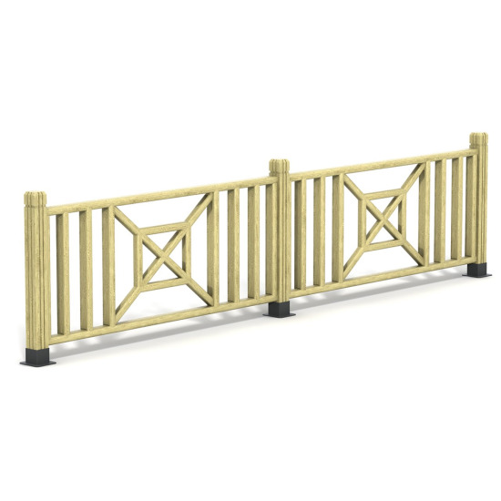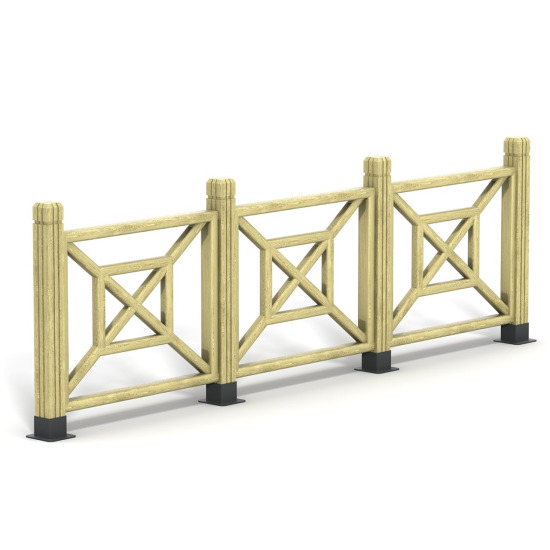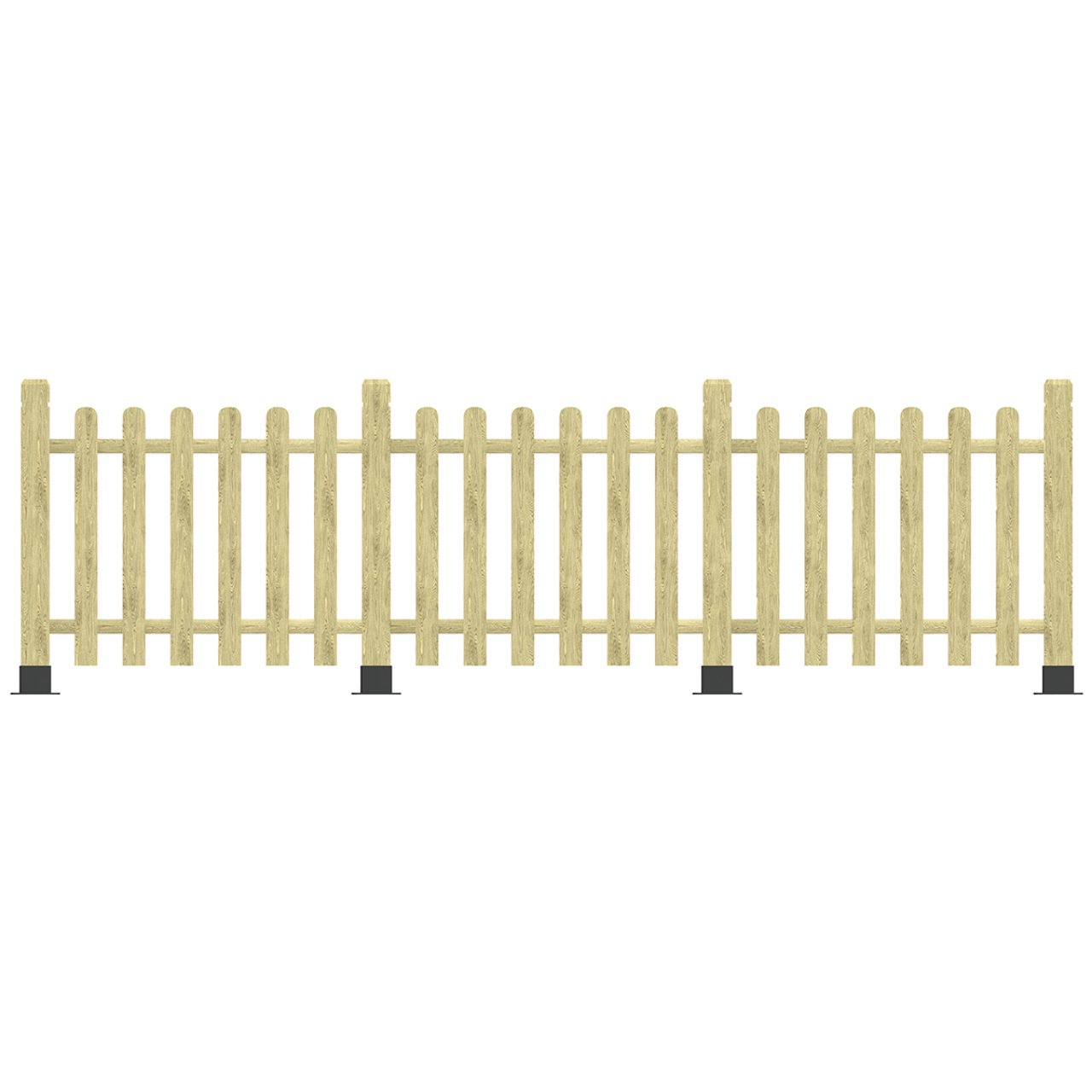 Özellikle “İngiliz Bahçesi” veya “Kır Evi” tarzı peyzaj düzenlemeleri için mükemmeldir. Çit çıtalarının uçları yuvarlatılmış olduğu için çocukların veya evcil hayvanların yaralanma riskini ortadan kaldırır. Direklerin altındaki siyah metal ayaklar (ankrajlar), ahşabın doğrudan zemin suyuyla temasını keserek çürümesini önler ve beton zeminlere kolayca montaj imkanı sunar. Yüksekliği, güvenli bir sınır oluştururken komşularla iletişimi koparmayan ideal seviyededir.