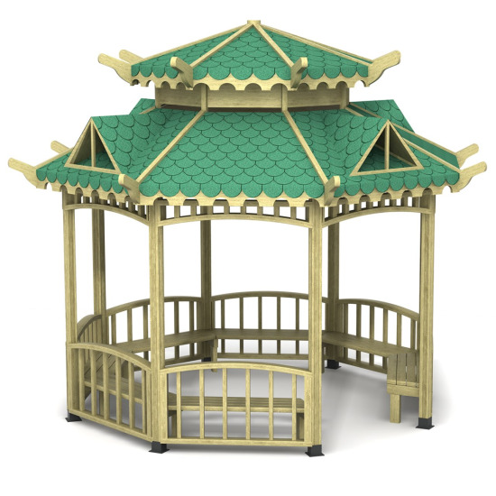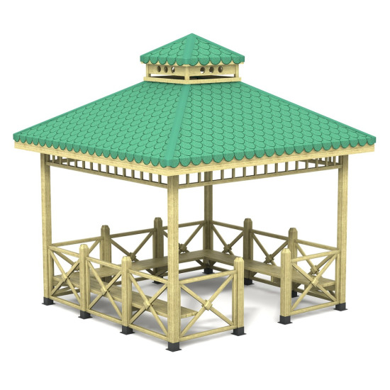 Park ve bahçelerde uzun ömürlü kullanım için geliştirilen, metal iskeletin gücünü ahşabın zarafetiyle birleştiren büyük ölçekli hibrit yapı. Bu 4×4 Metal Kamelya, genişletilmiş kare formu sayesinde kalabalık aile toplantıları veya site sakinlerinin ortak kullanımı için ideal bir alan (16 m²) sunar. Siyah boyalı metal profiller ve dekoratif boğumlu korkuluklar modern bir duruş sergilerken, çift katlı ahşap çatısı yapıyı sıradan bir demir yığınından kurtarıp şık bir mimari esere dönüştürür. Projenize ve peyzajınıza uygun olarak talep edilen renklerde üretilebilir.