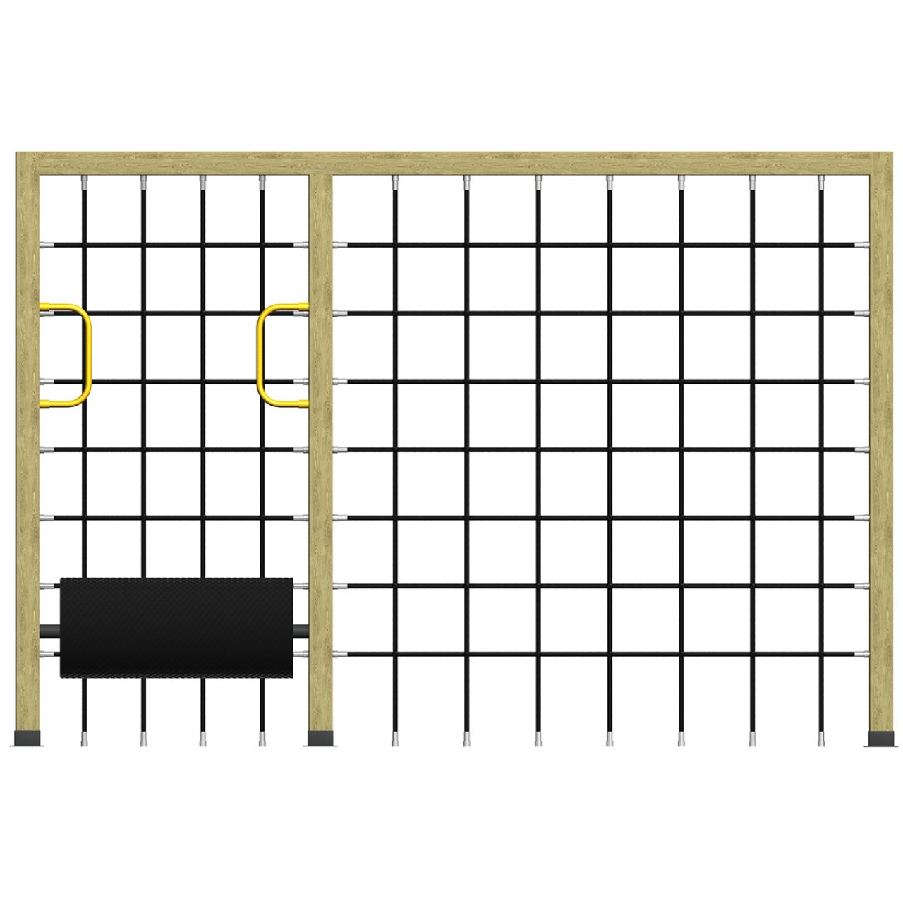 Halatlı Tırmanma Ağı: İçi çelik özlü, dışı yumuşak dokulu iplerden örülmüş dayanıklı tırmanma filesi.
