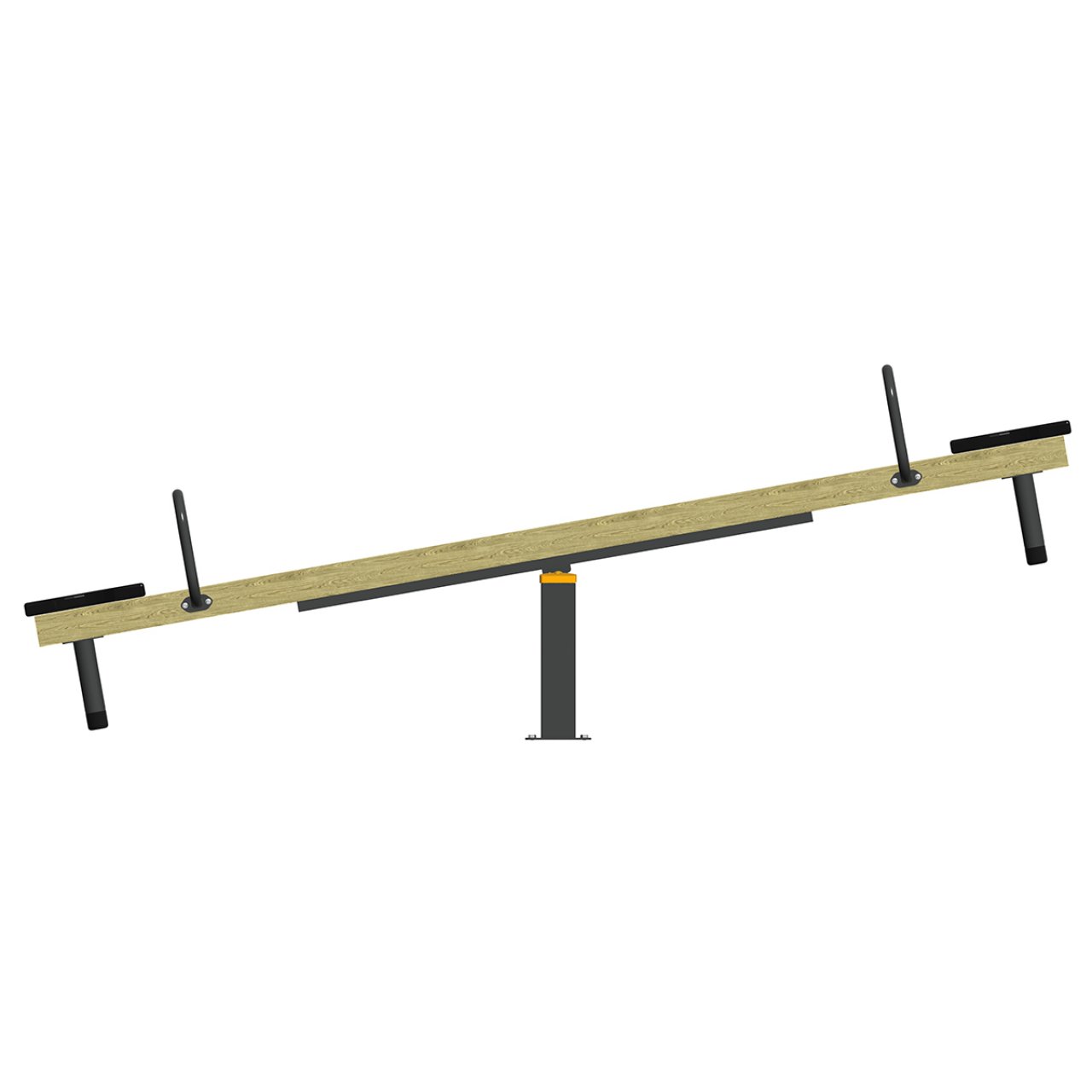 Ürünün oturma kalasları, dış mekan koşullarına karşı emprenye edilerek güçlendirilmiş 1. sınıf doğal ahşap malzemeden üretilmiştir. Metal taşıyıcı ayaklar ve tutamaklar ise projenize veya kurumsal renklerinize uyum sağlaması için dilediğiniz renk kombinasyonlarında üretilebilir. Her iki ucun altında bulunan kauçuk darbe emici stoperler (takozlar), yere inişleri yumuşatarak omurga sağlığını korur ve konforlu bir oyun deneyimi sunar.