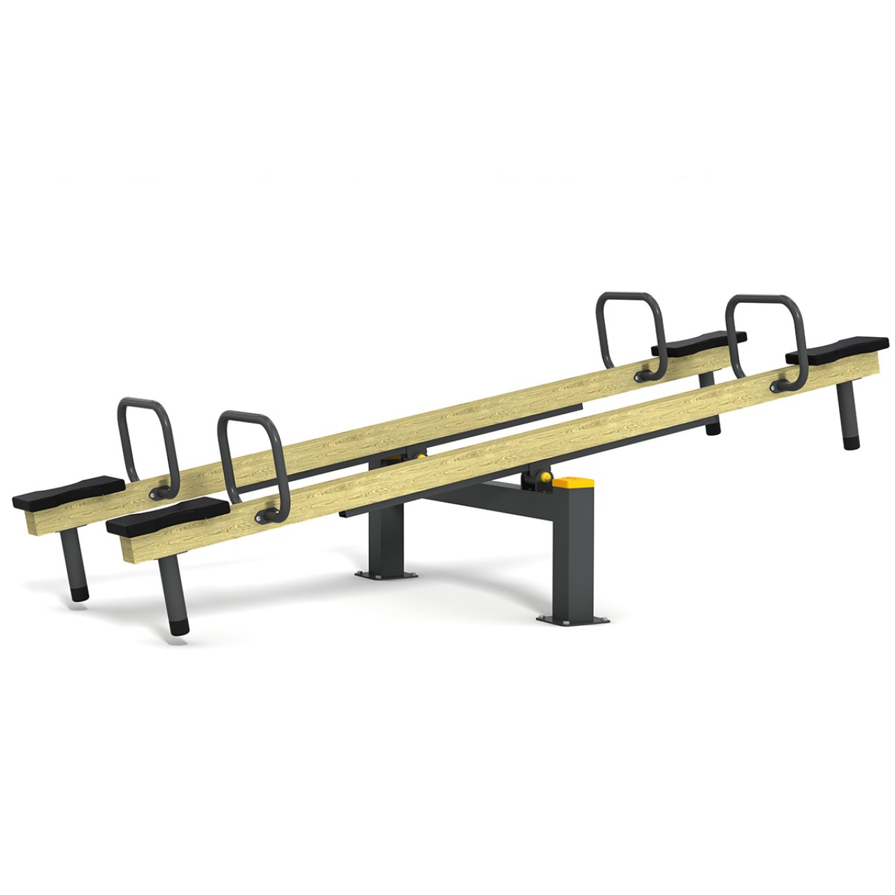 Ürün Açıklaması: Denge ve işbirliğinin en eğlenceli hali olan tahterevalli, bu özel tasarımda doğal ahşap gövde ile parklara sıcak bir atmosfer katar. Standart tekli modellerin aksine, bu ürün tek bir merkez ayak üzerinde iki ayrı tahterevalli mekanizması barındırır. Bu sayede aynı anda 4 çocuk keyifle oynayabilir, parklardaki bekleme süreleri azalır ve sosyal etkileşim artar.