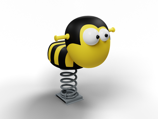 Kompakt Tasarım ve Dayanıklı Kompozit Yapı Merkezinde çocukların çok sevdiği doğa temalarından olan sevimli bir arı figürünün yer aldığı, dış mekan oyun alanları için tasarlanmış tek kişilik yaylı oyun elemanı (zıp zıp). Ürünün yuvarlak hatlara sahip çizgili gövdesini ve dikkat çekici büyük gözlerini oluşturan ana yapı, darbelere ve zorlu hava koşullarına karşı üstün dayanıklılık sağlayan fiberglass kompozit malzemeden üretilmiştir. Çocukların güvenle sallanabilmesi ve denge kurabilmesi için figürün baş kısmının her iki yanında anten formunda tasarlanmış ergonomik tutamaklar yer alır. Sistemin zemine bağlantısını ve dinamik sallanma hareketini sağlayan alt mekanizma, yüksek esneme kapasitesine sahip kalın ve güçlü bir metal (çelik) yay sisteminden oluşur. Yay sisteminin altındaki geniş taban plakası sayesinde zemine güvenle ankre edilen (sabitlenen) bu ürün, kompakt yapısıyla her türlü park, bahçe ve kreş projesine kolayca entegre edilebilir.