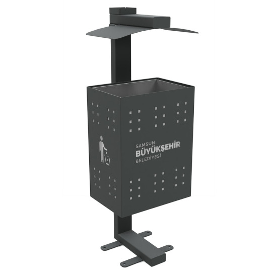 Prizmatik Gövdeli ve İkonlu Metal Çöp Kutusu