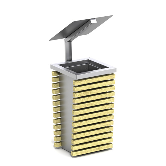 Dalgalı Formlu ve Dikey Lamalı Metal Çöp Kutusu