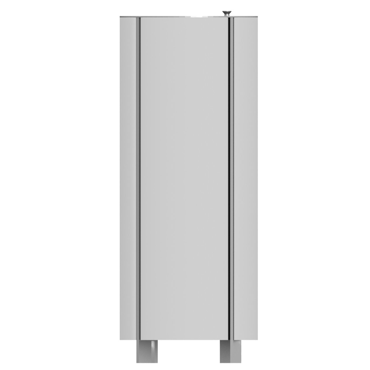Minimalist Tasarım ve Yüksek Yansıtıcılık Standart silindir çöp kutularına modern bir yorum getiren, gövdesi dikey metal panellerin yan yana gelmesiyle oluşturulmuş özel tasarım atık ünitesi. Bu paneller arasındaki dikey çizgiler (derzler), ürüne mimari bir ritim kazandırır. Işığı yansıtan parlak metal yüzey, bulunduğu alana lüks ve hijyenik bir hava katar. Üst çerçevesinde bulunan küçük tutamak/kilit topuzu, dış gövdenin açılabilir (menteşeli) bir kapak gibi çalıştığını ve iç hazneye kolay erişim sağlandığını işaret eder. Gövdenin uzantısı olan kısa ayak yapısı, ürünü zeminden hafifçe yükselterek zarif bir bitiş sağlar.