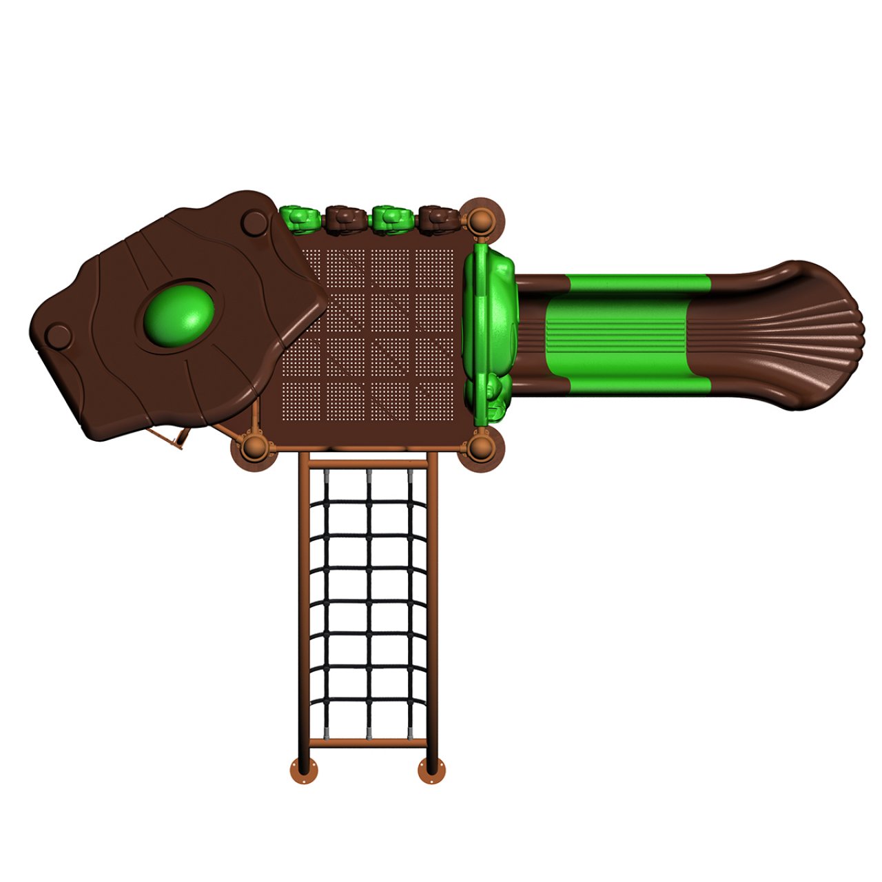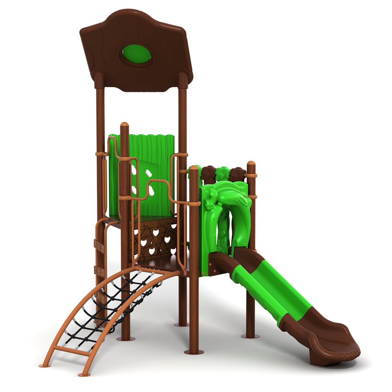 - Aktivite Modülleri: 1 adet ergonomik tasarımlı Polietilen kaydırak, 1 adet koruyucu çatı ve 1 adet çelik halatlı tırmanma ağı köprüsü.