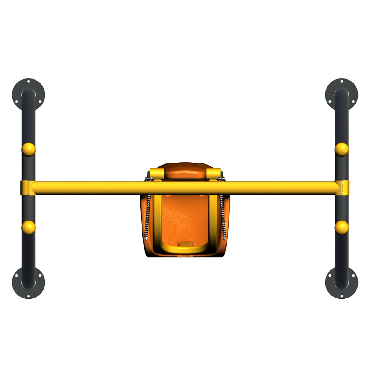 Ürünün en önemli parçası, Yüksek Sırt Dayanaklı Polietilen Oturak modülüdür. Turuncu renkli bu özel koltuk, çocuğun baş ve boyun bölgesini destekler. Koltuğun ön kısmında bulunan İndirilebilir Sarı Güvenlik Barı, çocuğu göğüs hizasından kavrayarak öne doğru düşmeleri veya kaymaları kesin olarak engeller. Gövde yapısı, antrasit renkli sağlam metal ayaklar ve sarı üst kirişten oluşur. Belediyelerin “Engelsiz Park” projeleri ve özel eğitim kurumları için zorunlu ve prestijli bir ekipmandır.