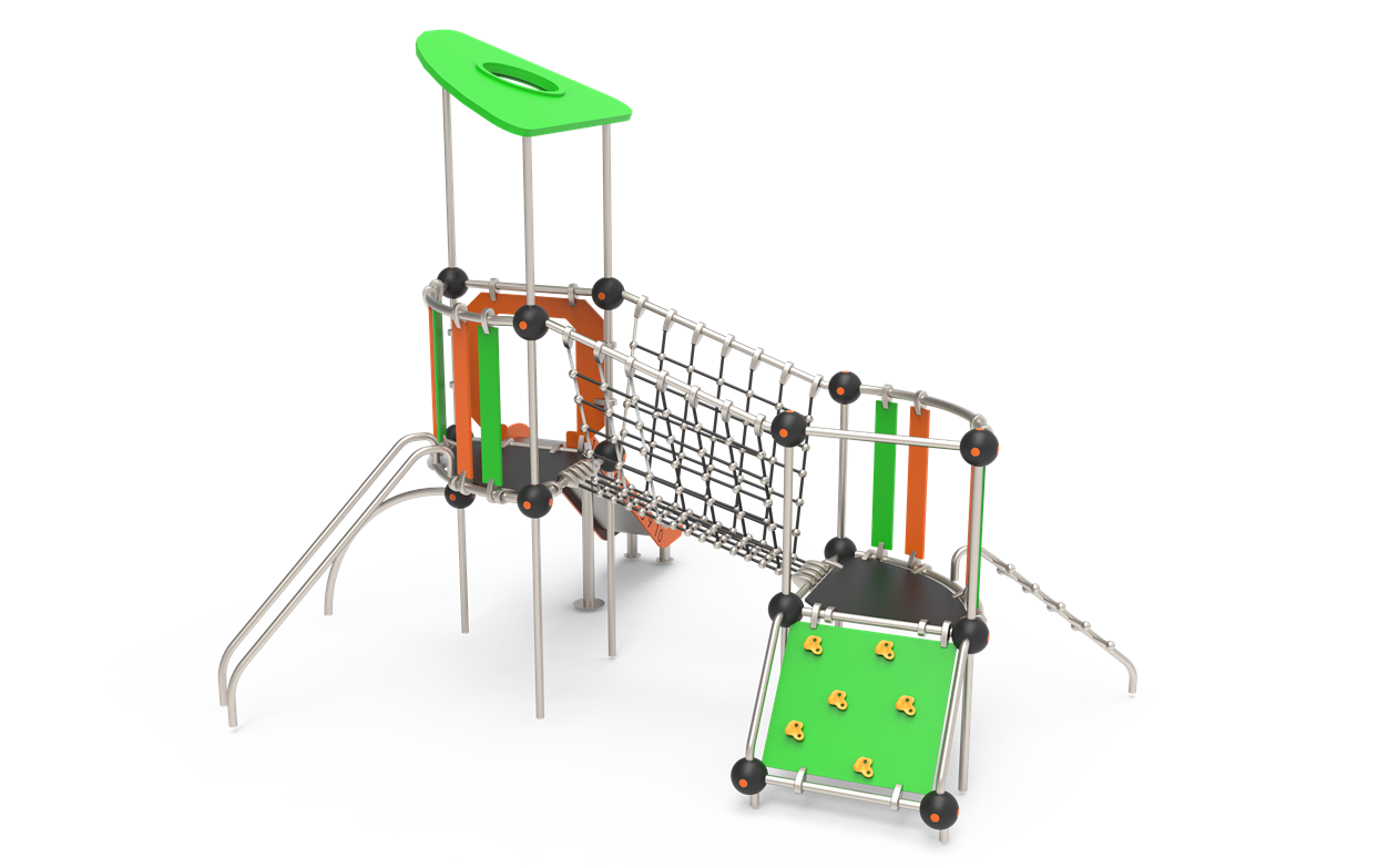 Çocukların fiziksel gelişimini, denge koordinasyonunu ve problem çözme yeteneklerini zirveye taşıyan yeni nesil metal tırmanmalı macera parkurumuz, standart oyun alanlarının ötesinde bir deneyim sunar. Tamamen dış mekan koşulları ve yoğun kamusal kullanıma göre tasarlanan bu oyun grubu, en zorlu hava şartlarına ve vandalizme karşı üstün bir korozyon direnci göstererek yıllarca ilk günkü sağlamlığını ve estetiğini korur. Peyzaj projenize değer katacak bu macera parkuru, çocuklara güvenli bir ortamda tırmanma, denge kurma ve keşfetme özgürlüğü tanır.