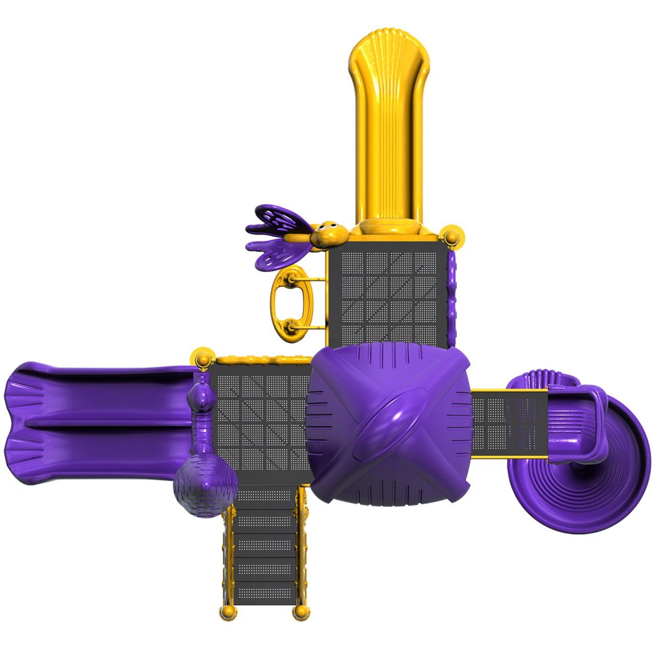 Canlı mor ve sarı renklerin uyumu ile park alanlarında estetik bir görünüm sergilerken; çam ağacı ve kelebek figürleri çocukların hayal dünyasına hitap eder. Güneşe ve dış hava koşullarına dayanıklı 1. sınıf polietilen malzemeden üretilmiştir.