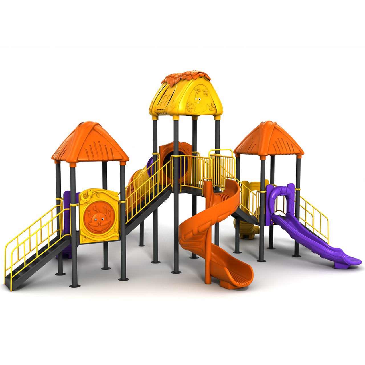 Aktivite zenginliği açısından en donanımlı modellerimizden biri olan bu grupta toplam 5 adet kaydırak bulunmaktadır: Heyecanı zirveye taşıyan 1 adet Tüp (Tünel) Kaydırak, 1 adet Helezon (Spiral) Kaydırak ve 3 adet Düz Kaydırak. Bu çeşitlilik, farklı yaş gruplarındaki çocukların aynı anda, sıkılmadan ve sıra beklemeden oyun oynamasına olanak tanır. Belediyeler, büyük site kompleksleri ve okul bahçeleri için prestijli ve uzun ömürlü bir tercihtir.