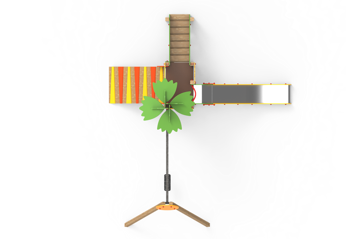 Alan Tasarruflu Tasarım ve Çoklu Aktivite Sınırlı alana sahip parklar, kreşler, restoran bahçeleri veya özel konut projeleri için özel olarak tasarlanmış, az yer kaplayan ancak yüksek oyun değeri sunan kompakt dış mekan oyun grubu. Ürünün merkezinde yer alan kare formlu tek platforma, çocukların motor becerilerini geliştiren iki farklı zorluk derecesine sahip erişim noktası bulunur: Ön cephede açılı bir tırmanma ağı (kargo ağı) ve yan cephede klasik bir dikey tırmanma merdiveni.