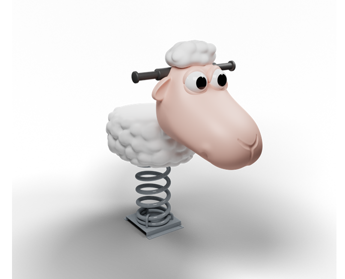 Kompakt Tasarım ve Dayanıklı Kompozit Yapı Merkezinde çocukların çok sevdiği sevimli bir kuzu (koyun) figürünün yer aldığı, dış mekan oyun alanları için tasarlanmış tek kişilik yaylı oyun elemanı (zıp zıp). Ürünün pofuduk yün görünümüne sahip oturma alanını ve detaylı baş kısmını oluşturan ana gövde, darbelere ve zorlu hava koşullarına karşı üstün dayanıklılık sağlayan fiberglass kompozit malzemeden üretilmiştir. Çocukların güvenle sallanabilmesi ve denge kurabilmesi için figürün baş kısmının arkasında ergonomik tutamaklar yer alır. Sistemin zemine bağlantısını ve dinamik sallanma hareketini sağlayan alt mekanizma, yüksek esneme kapasitesine sahip kalın ve güçlü bir metal (çelik) yay sisteminden oluşur. Yay sisteminin altındaki geniş taban plakası sayesinde zemine güvenle ankre edilen (sabitlenen) bu ürün, kompakt yapısıyla her türlü park, bahçe ve kreş projesine kolayca entegre edilebilir.