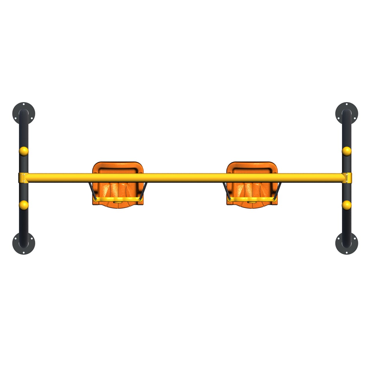Ürünün gövdesi, dış mekan trendlerine uygun olarak Antrasit (Koyu Gri) Ayaklar ve dikkat çekici Sarı Üst Kiriş kombinasyonuyla renklendirilmiştir. Turuncu renkli polietilen oturaklar, ön kısımlarındaki sarı bariyerler sayesinde çocuğun sallanırken öne doğru düşmesini kesin olarak engeller. Paslanmaya karşı elektrostatik fırın boya ile korunan sağlam metal iskelet, uzun yıllar boyunca parklarınıza ve bahçelerinize değer katar.