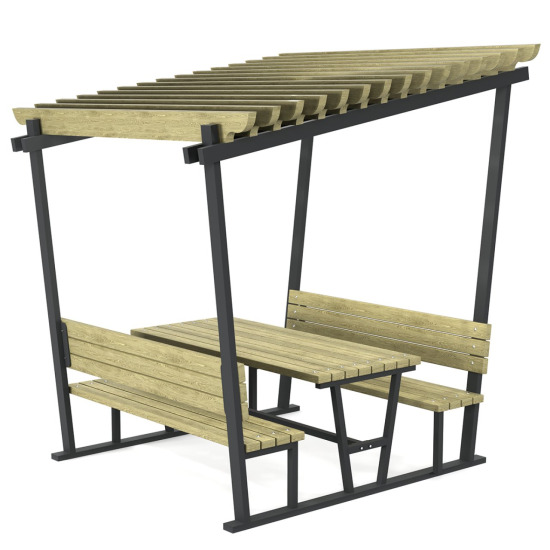 Özellikle okul kantinleri, proje toplantı alanları ve parklar gibi sosyalleşmenin önemli olduğu yerler için idealdir. Masayı çevreleyen 3 adet kavisli oturma bankı, hem ergonomik bir oturum sunar hem de aralarındaki boşluklar sayesinde masaya giriş-çıkışı (üzerinden atlamaya gerek kalmadan) son derece kolaylaştırır. Merkezdeki metal alan, sıcak tencere/çaydanlık koymak veya yağmur suyu tahliyesi için de işlevsel bir alan yaratır.