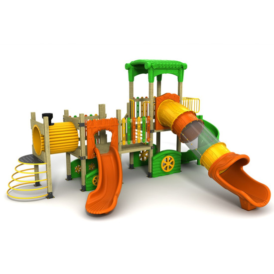 - Kaydırak Modülü: Paslanmaz çelik kayma yüzeyi ve UV korumalı, darbeye dayanıklı Yüksek Yoğunluklu Polietilen (HDPE) yan paneller