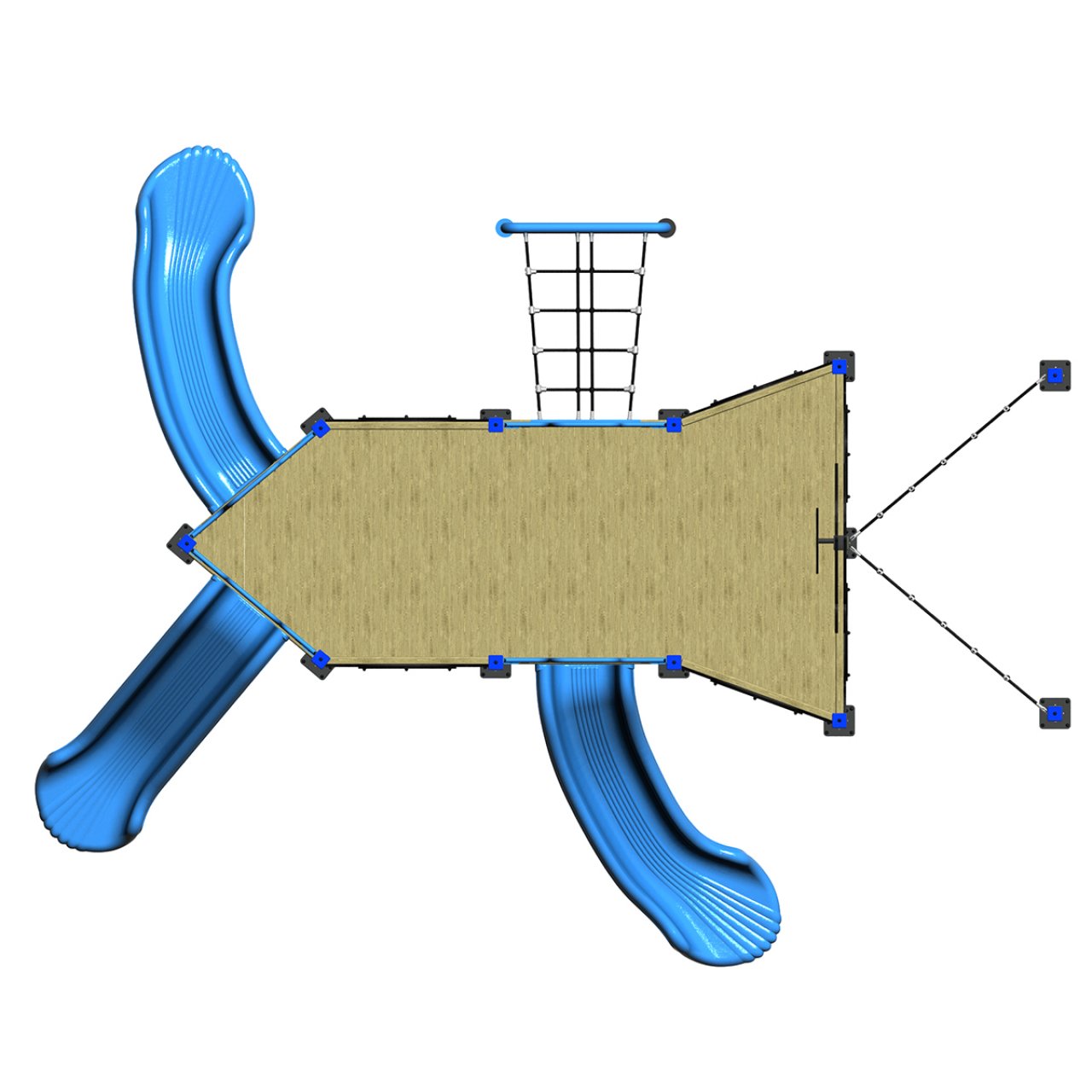Ürün Açıklaması: Minik denizcilerin hem kayma keyfini yaşayacağı hem de fiziksel güçlerini sınayacağı Tırmanma Ağlı Yunuslu Gemi, parklara hareket ve enerji getiriyor. Klasik gemi tasarımlarından farklı olarak bu modelin arka kısmında, çocukların kondisyonunu ve motor becerilerini geliştiren geniş bir İpli Tırmanma Duvarı (Ağı) bulunur.