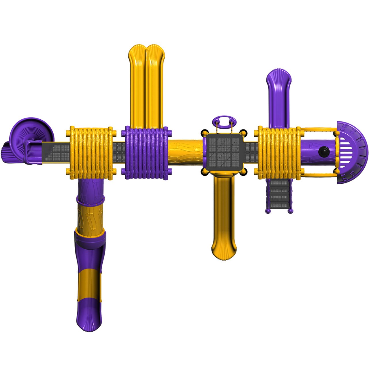 - Aktivite Modülleri: Bir adet çiftli düz kaydırak, bir adet spiral (helezon) kaydırak, tırmanma panelleri, tematik tren vagonu geçiş tünelleri ve çok sayıda platform.