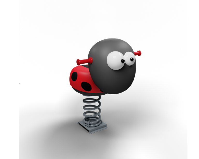 Kompakt Tasarım ve Dayanıklı Kompozit Yapı Merkezinde çocukların çok sevdiği sevimli bir uğur böceği figürünün yer aldığı, dış mekan oyun alanları için tasarlanmış tek kişilik yaylı oyun elemanı (zıp zıp). Ürünün oturma alanını ve figürünü oluşturan ana gövde, darbelere ve zorlu hava koşullarına karşı üstün dayanıklılık sağlayan fiberglass kompozit malzemeden üretilmiştir. Çocukların güvenle sallanabilmesi ve denge kurabilmesi için figürün baş kısmının iki yanında ergonomik tutamaklar yer alır. Sistemin zemine bağlantısını ve dinamik sallanma hareketini sağlayan alt mekanizma, yüksek esneme kapasitesine sahip kalın ve güçlü bir metal (çelik) yay sisteminden oluşur. Yay sisteminin altındaki geniş taban plakası sayesinde zemine güvenle ankre edilen (sabitlenen) bu ürün, kompakt yapısıyla her türlü park, bahçe ve kreş projesine kolayca entegre edilebilir.